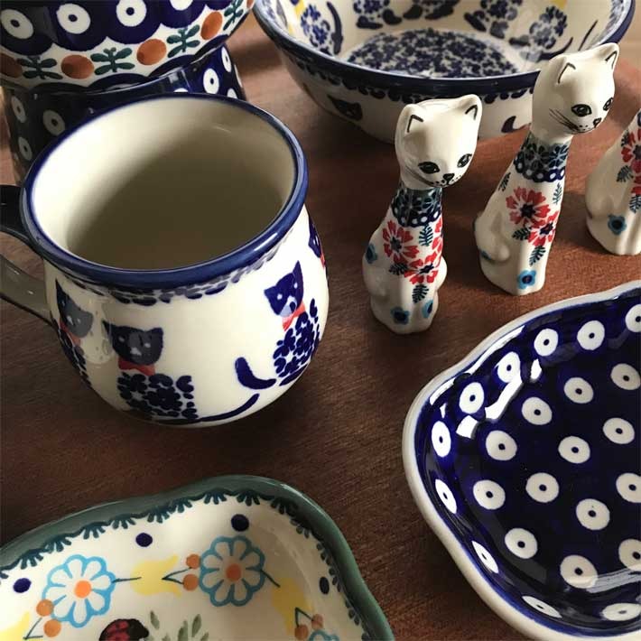 飾れてポーランド陶器好きや、猫好きさんにも人気です。
