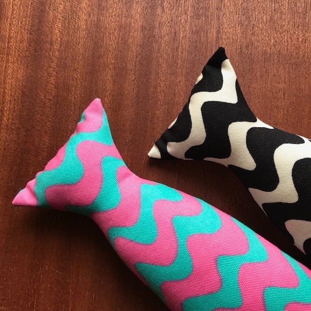 カラフルな波柄でインテリアとの相性も抜群の魚型のけりぐるみです。